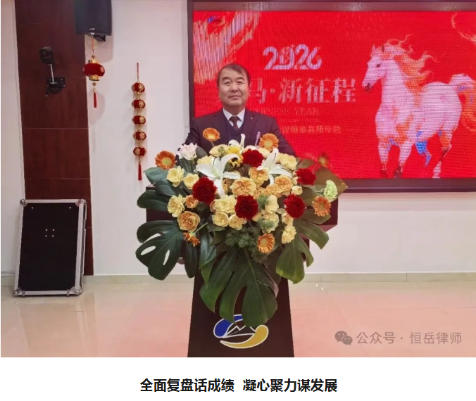 策马扬鞭,聚力前行。2026年2月8日,山东恒岳律师事务所召开2025年度年会,全体同仁欢聚一堂,辞旧迎新,总结回顾2025奋斗历程与得失,感恩赋能共进的温暖与力量,携手共赴2026新征程。